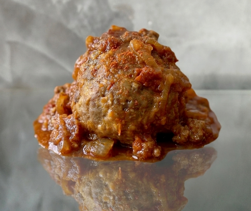 PORZIONE DA 6 polpette di manzo e maiale, ragù alla Genovese calabra con cipolla rossa di Tropea e ‘nduja di Spilinga